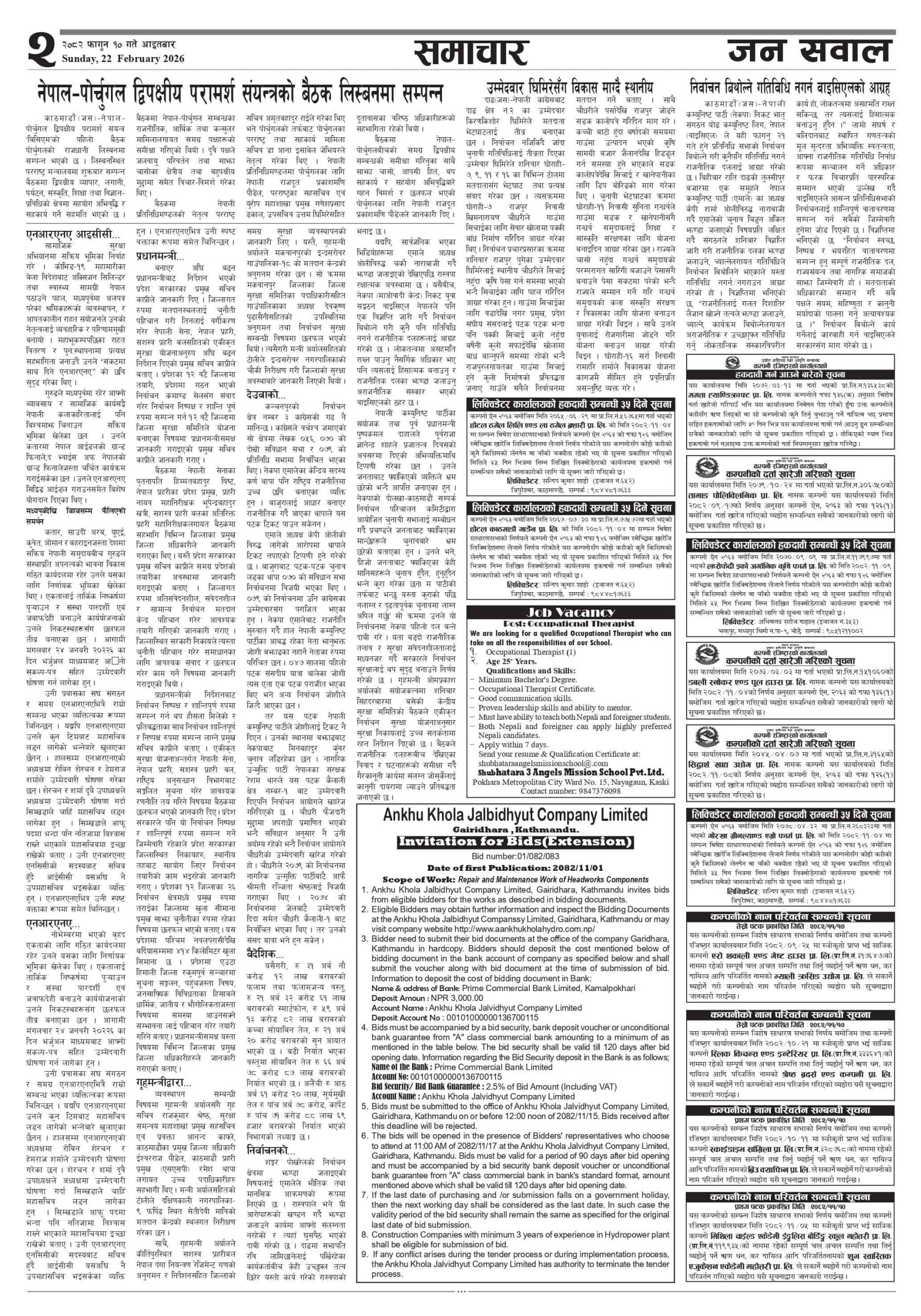 Site is located in Dhading District close to 132 km from Kathmandu; Ankhu Khola is one of the major tributaries of Budhi Gandaki Nadi. The catchments area of Ankhu Khola is about 633 km2. The mean annual flow is estimated to be 58.38 cumecs. A design discharge of 34.5 cumecs having a probability of more than 40% has been considered.